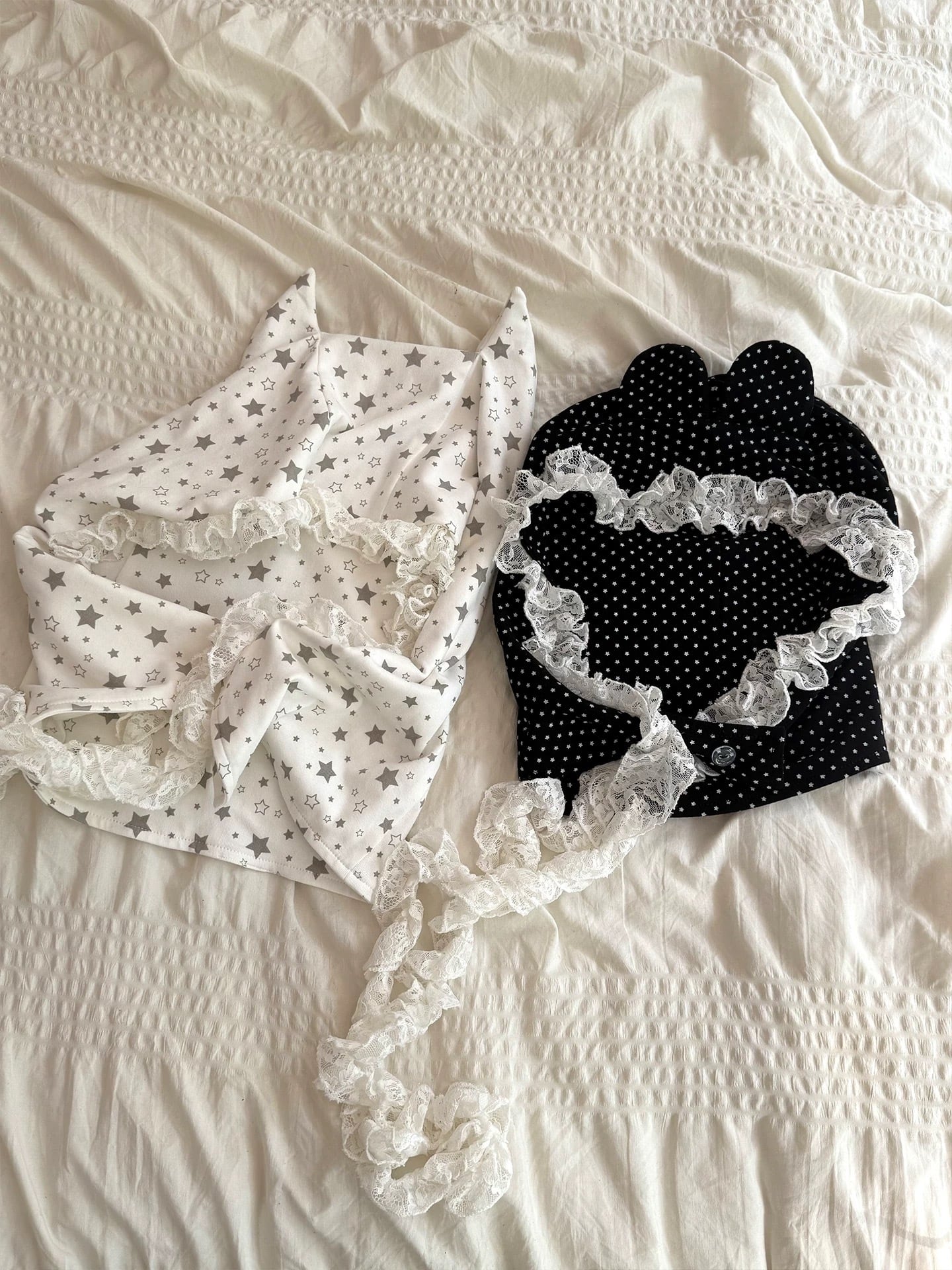星柄の生地と繊細なレースを組み合わせたデザインフード⭐︎