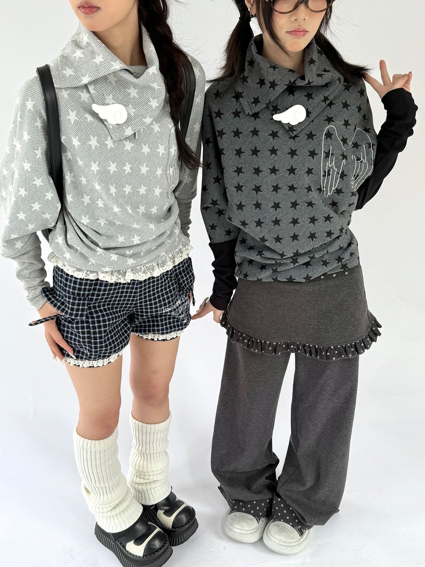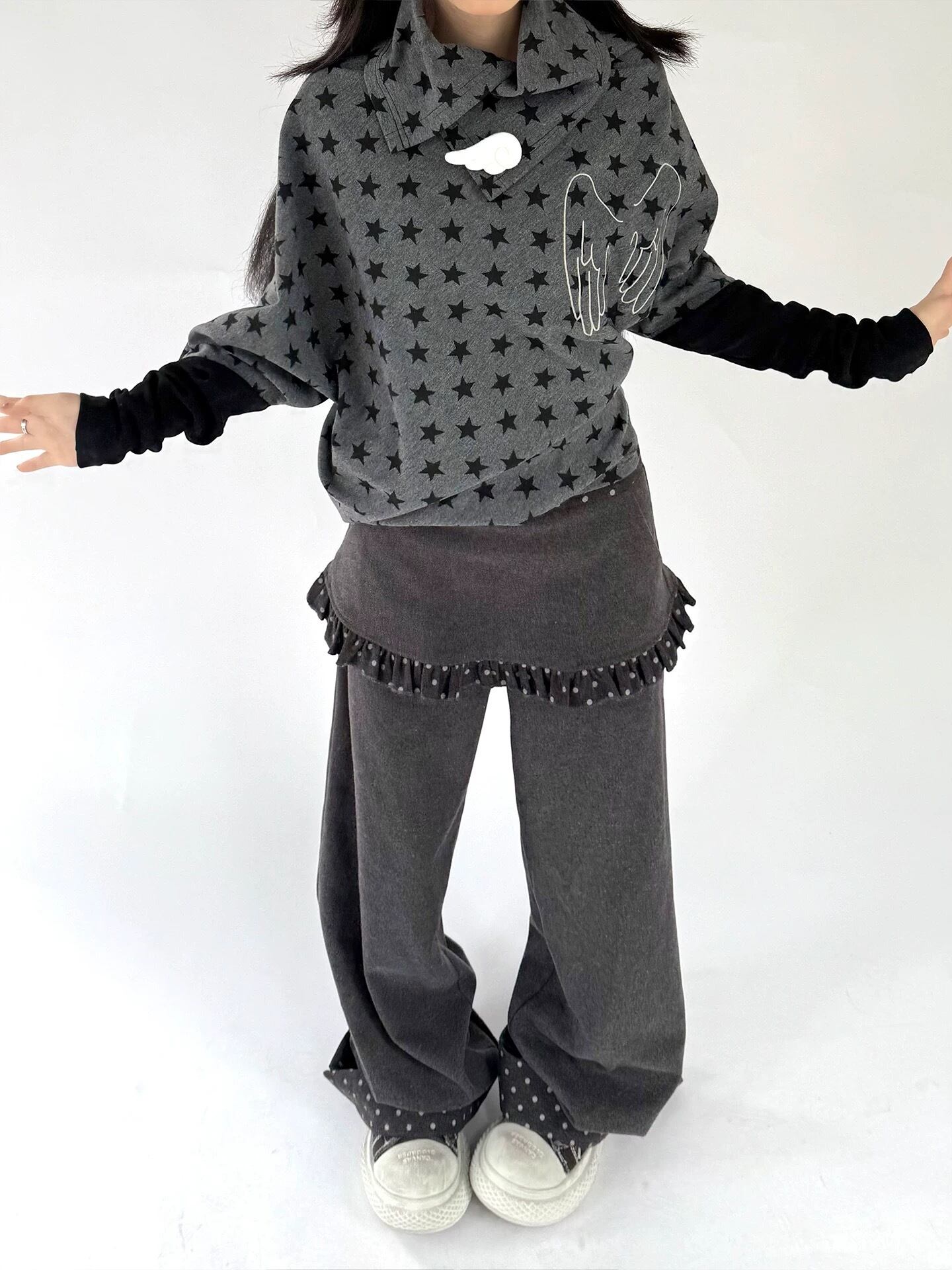 天使の羽型ピンバッジが印象的な星柄トップス⭐︎