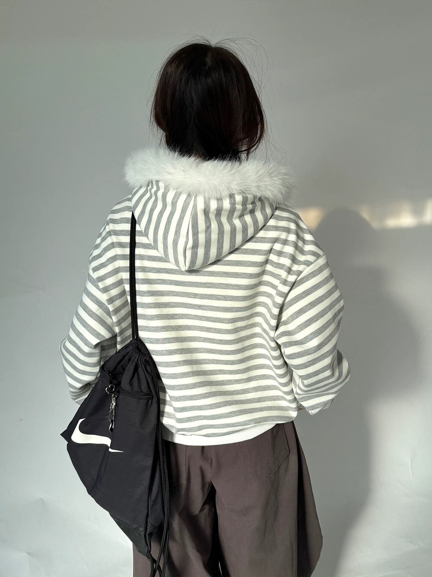 ふわふわのフェイクファーとボーダー柄が可愛いジップフーディ˙⟡