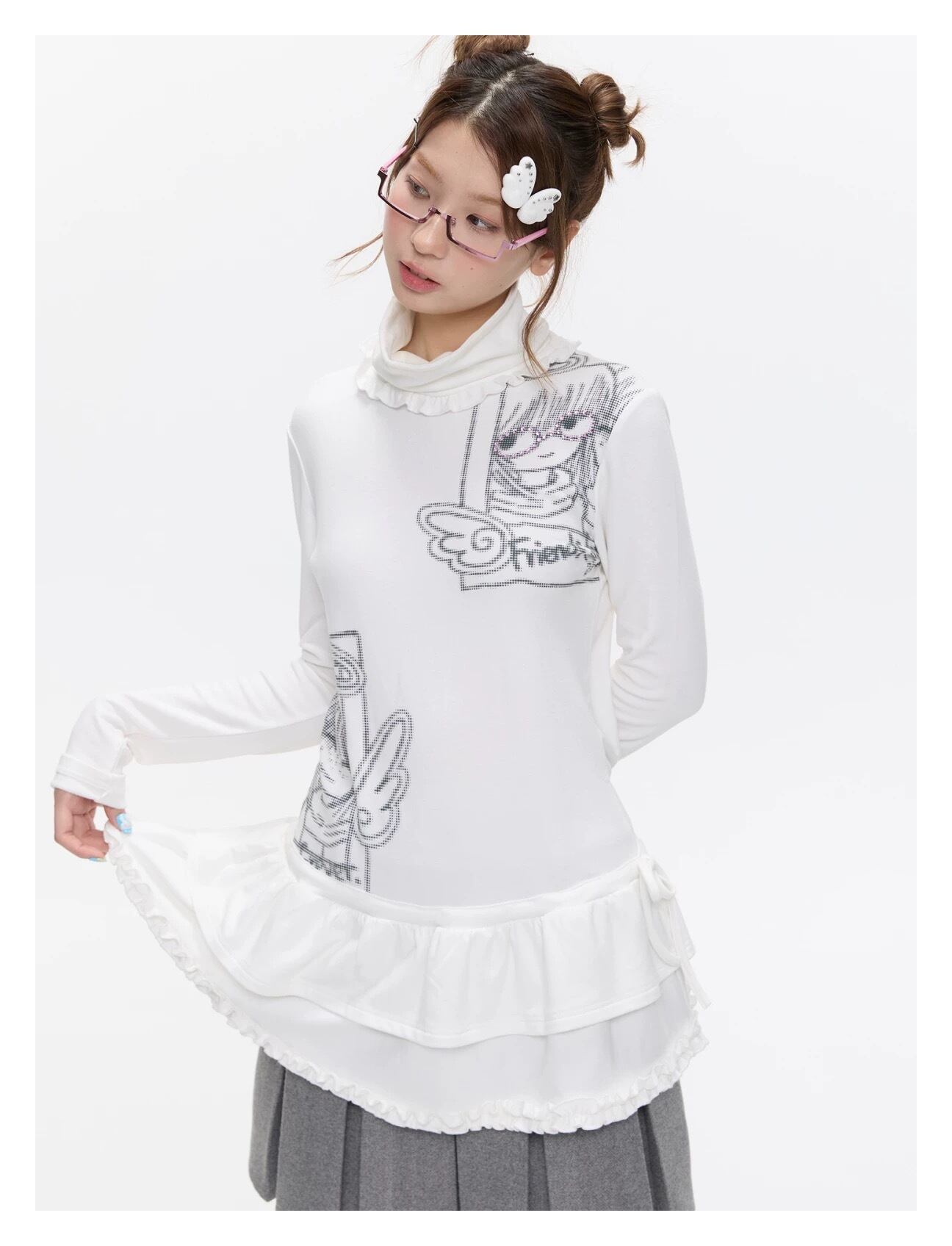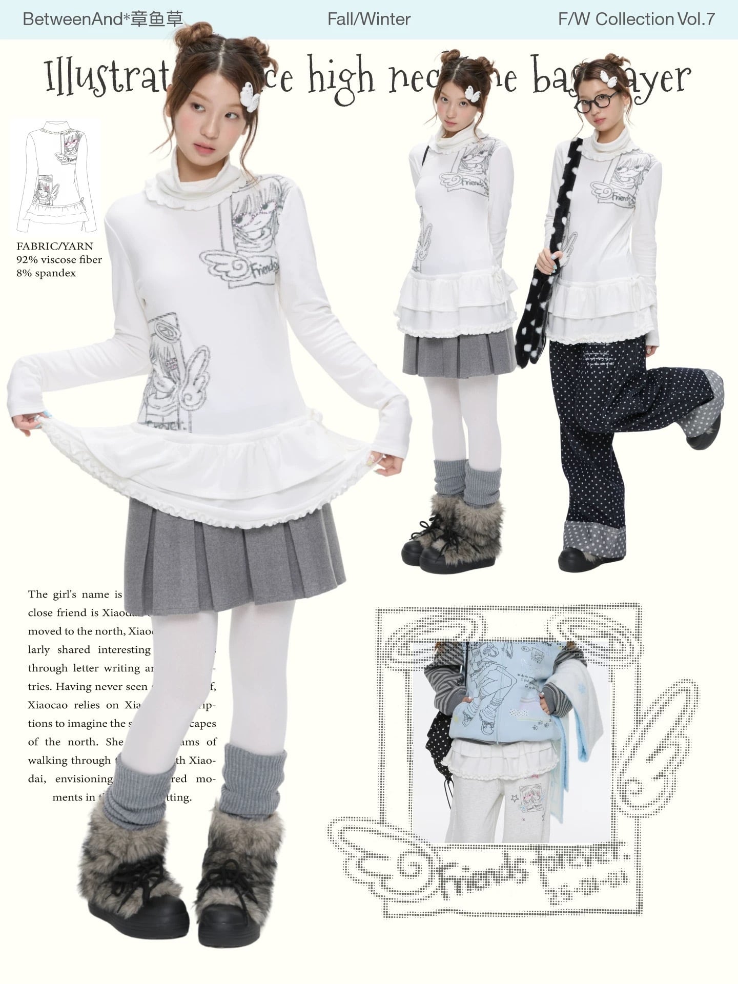 ハイネックが印象的な、イラスト入りレイヤートップス。