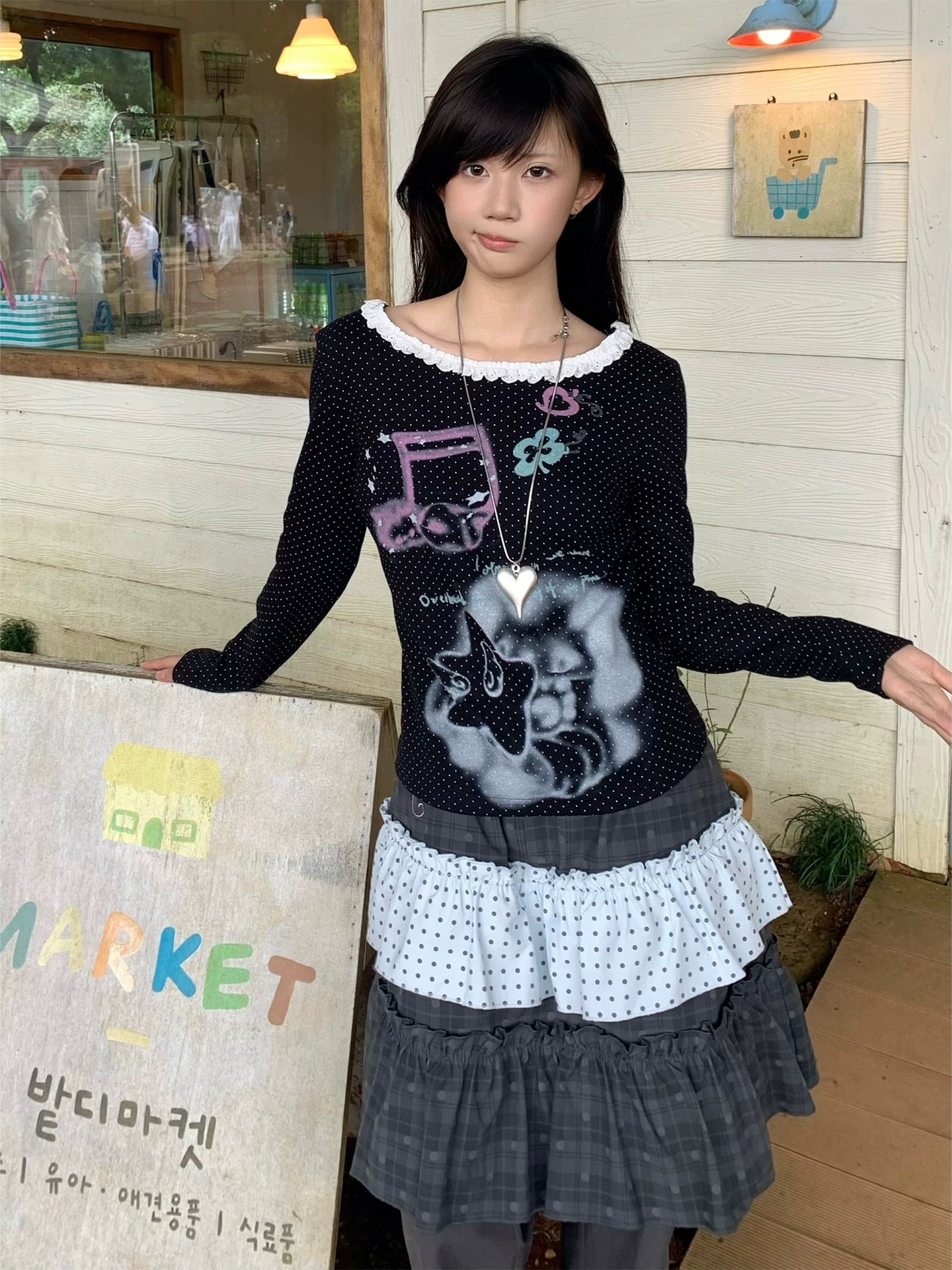 落ち着いたトーンのチェック生地に、軽やかなドットフリルを組み合わせることで、甘さとラフさのバランスを取った一着です⋆˙⟡