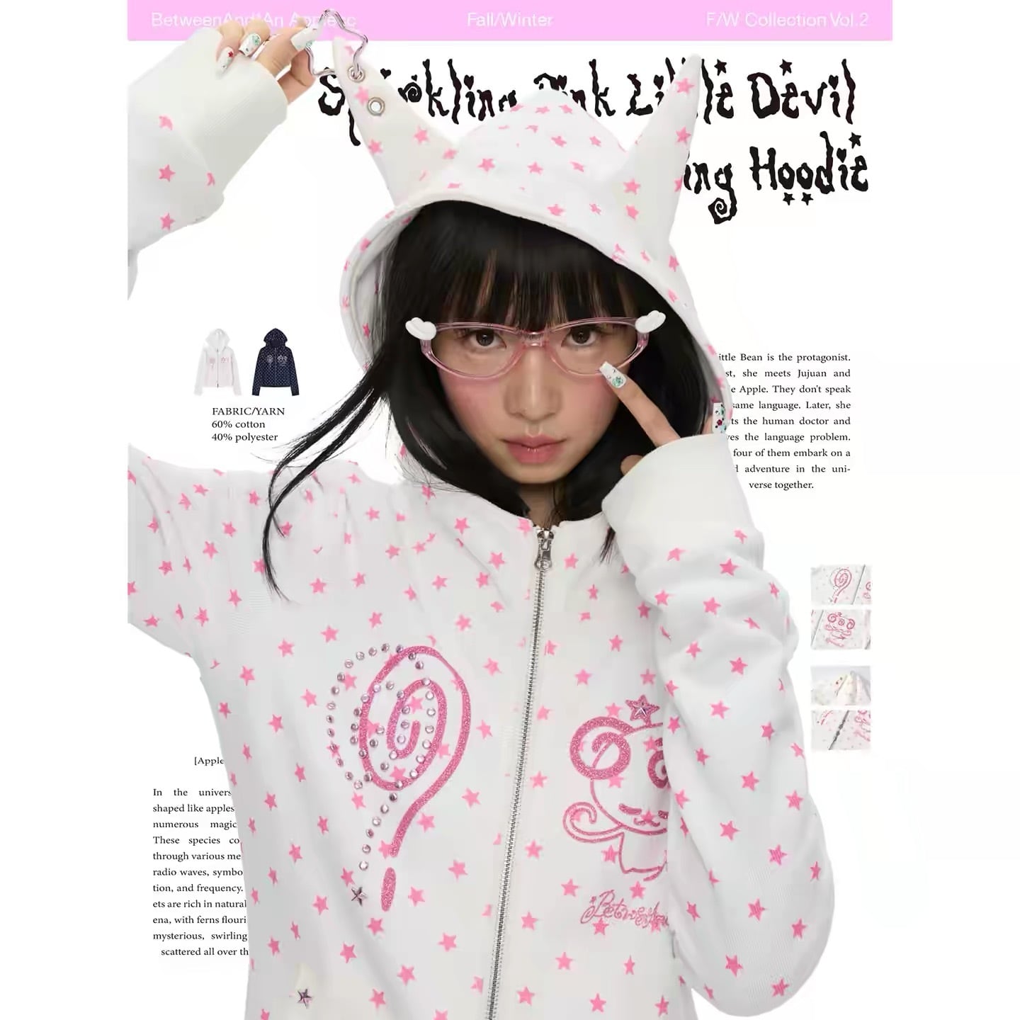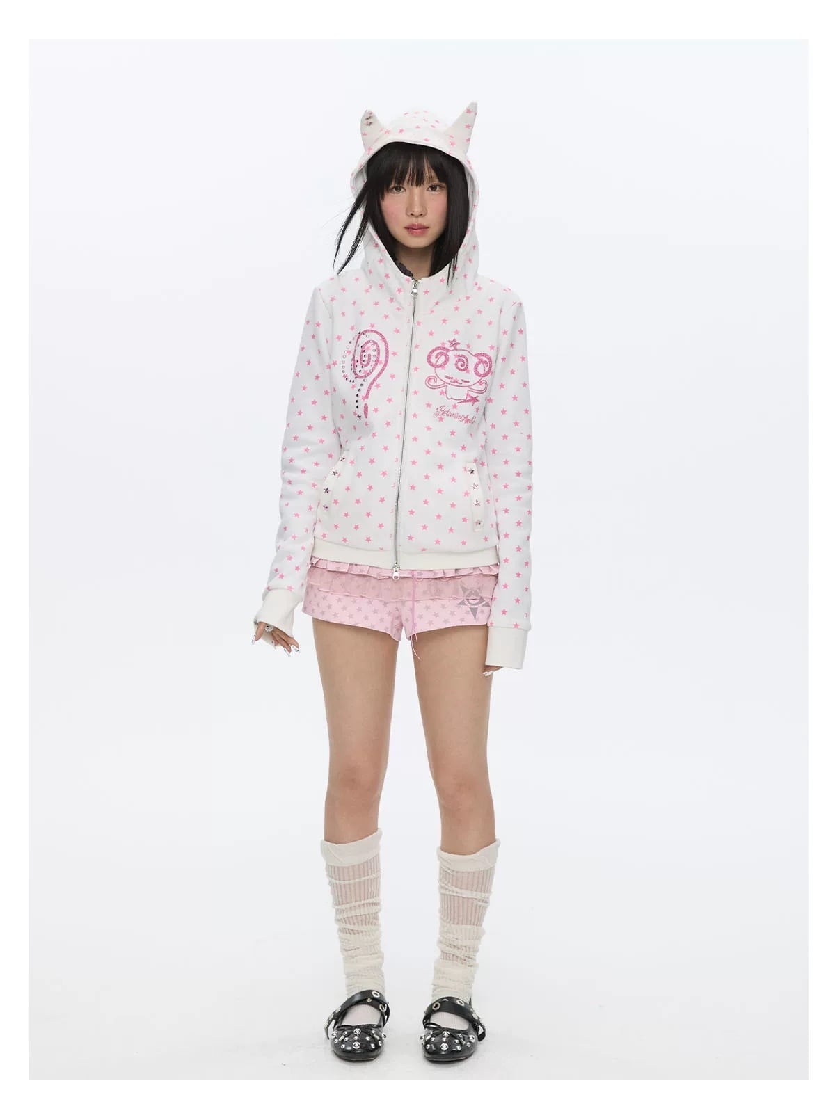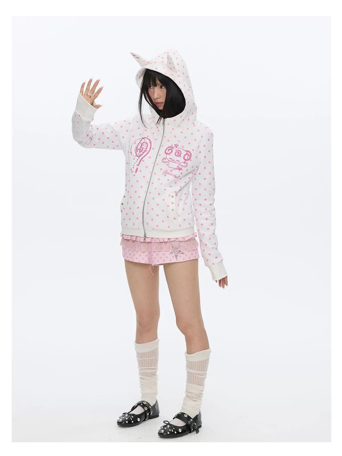 星柄の中にオリジナルイラストを落とし込んだジップフーディー✶