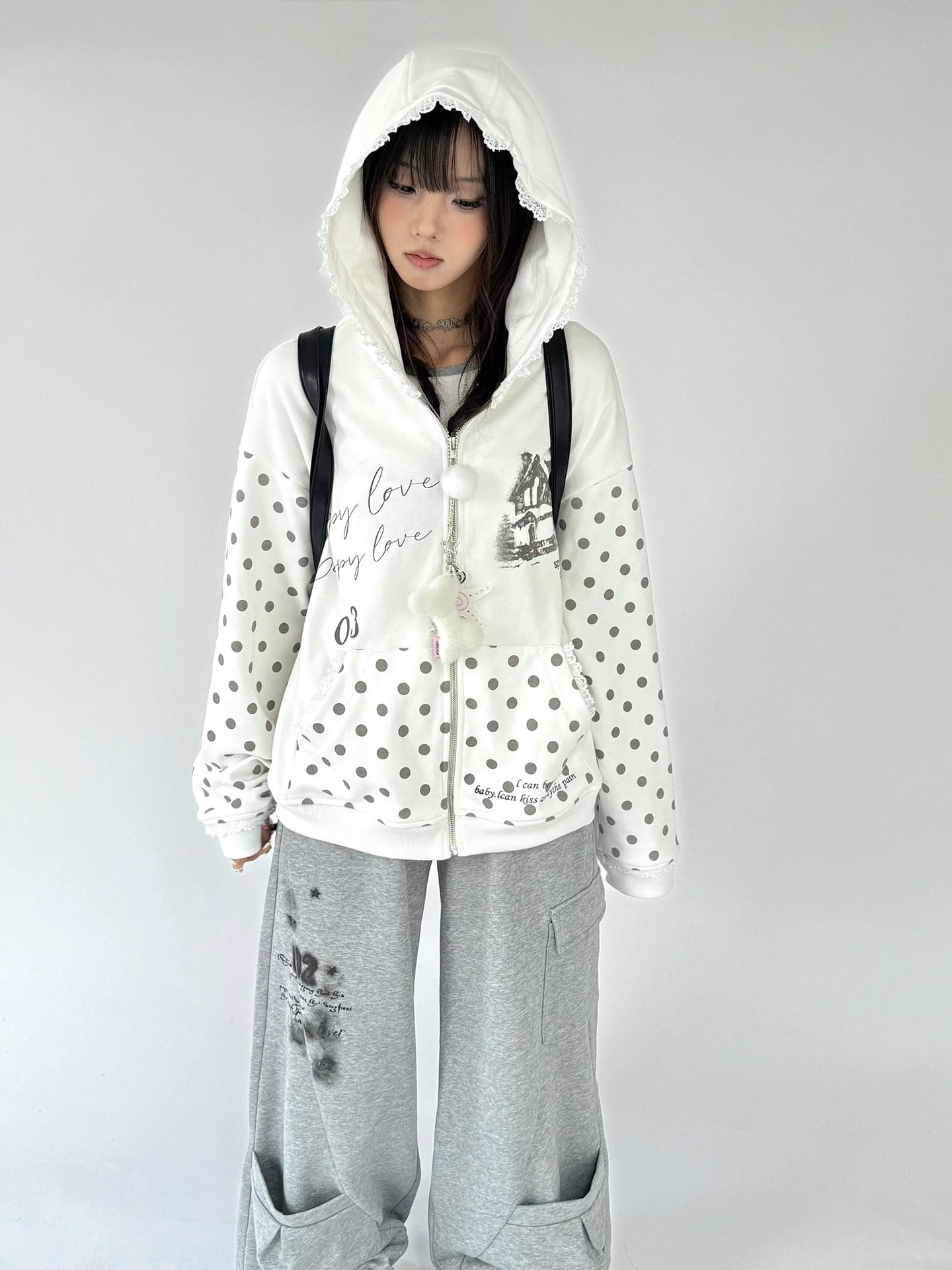 フードとポケットにはレースの装飾が入ったデザイン໒꒱· ゚