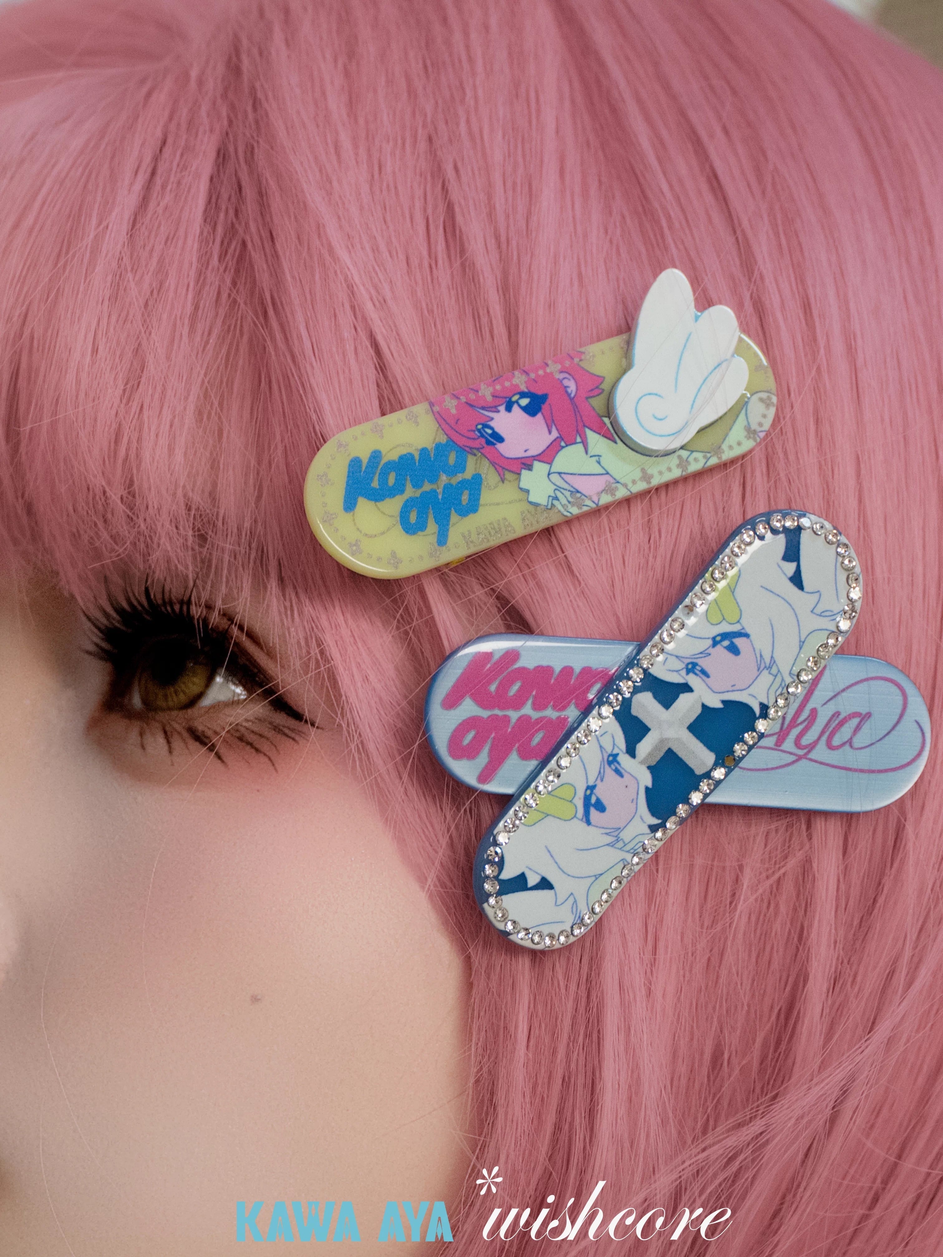KAWA AYAのブランドキャラクターが描かれた、ポップで幻想的なヘアクリップ໒꒱· ゚