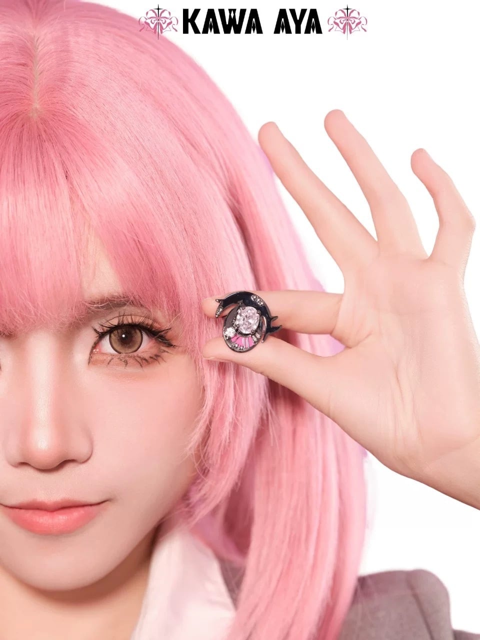 中央の大きなストーンを“瞳”のように見立てたデザインに、まつ毛のようなフォルムやピンクのアクセントが加わり、アニメや90〜00年代の漫画の雰囲気を感じさせるユニークな仕上がりになっています。