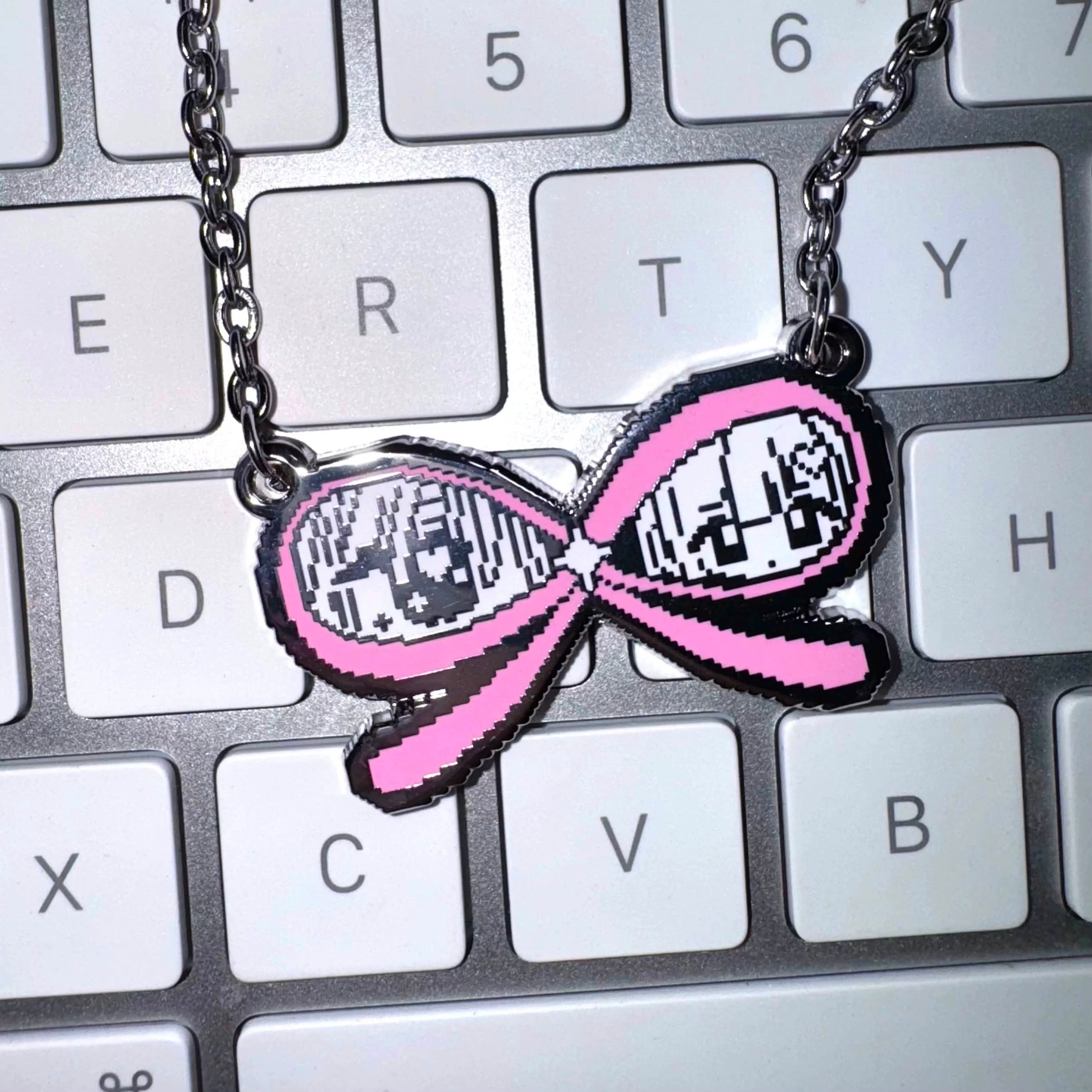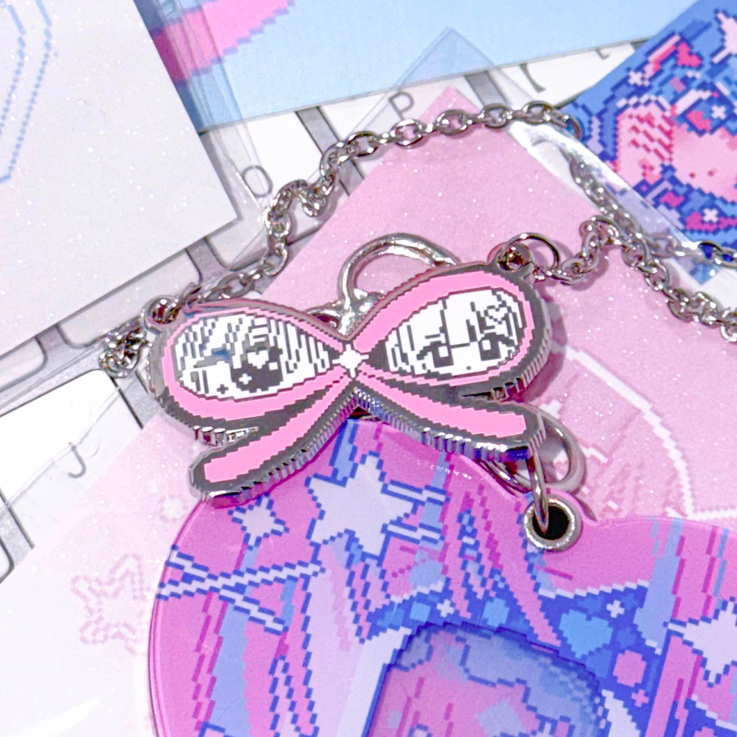 ∞モチーフのリボンに、ドット調のキャラクターデザインを落とし込んだネックレス⟡.·
