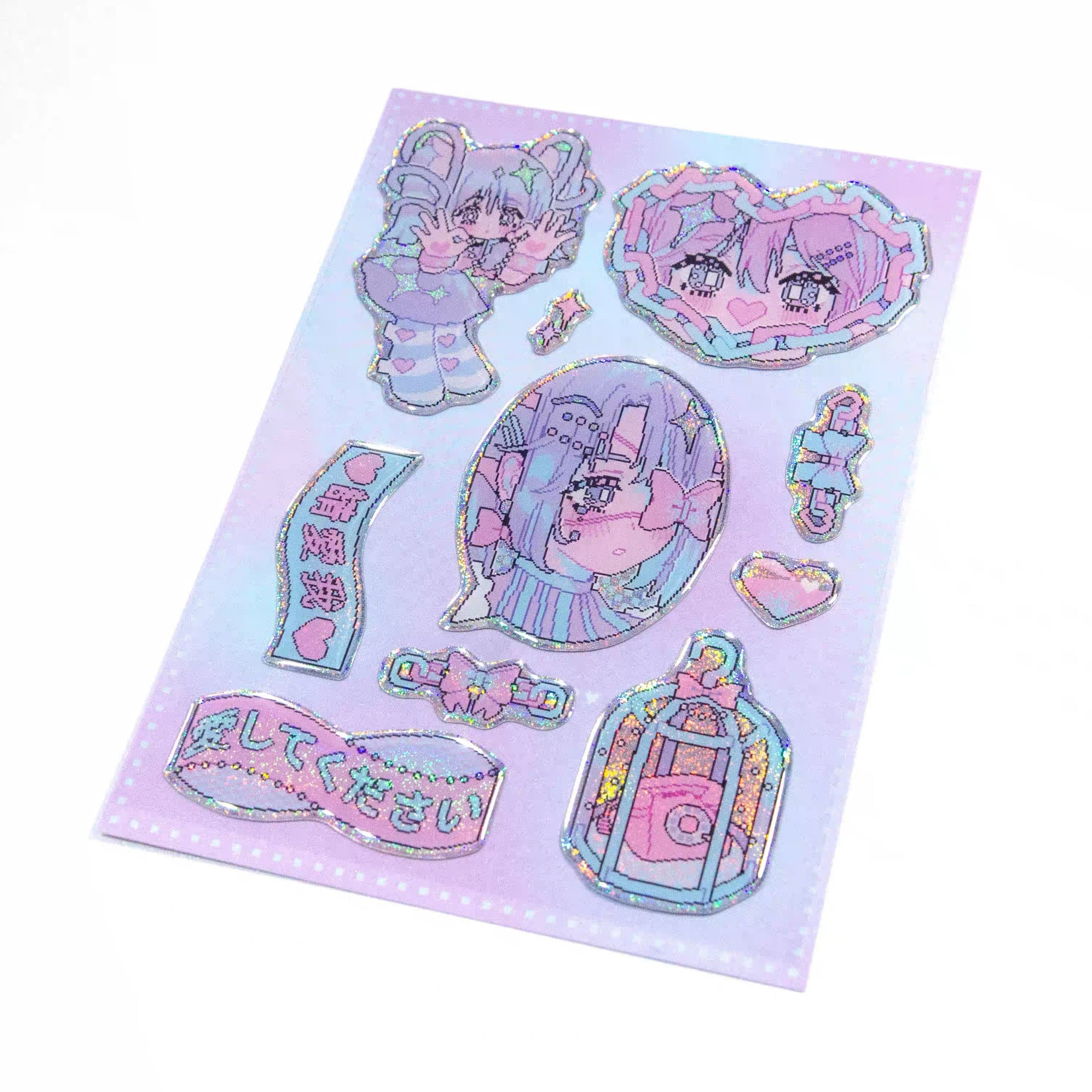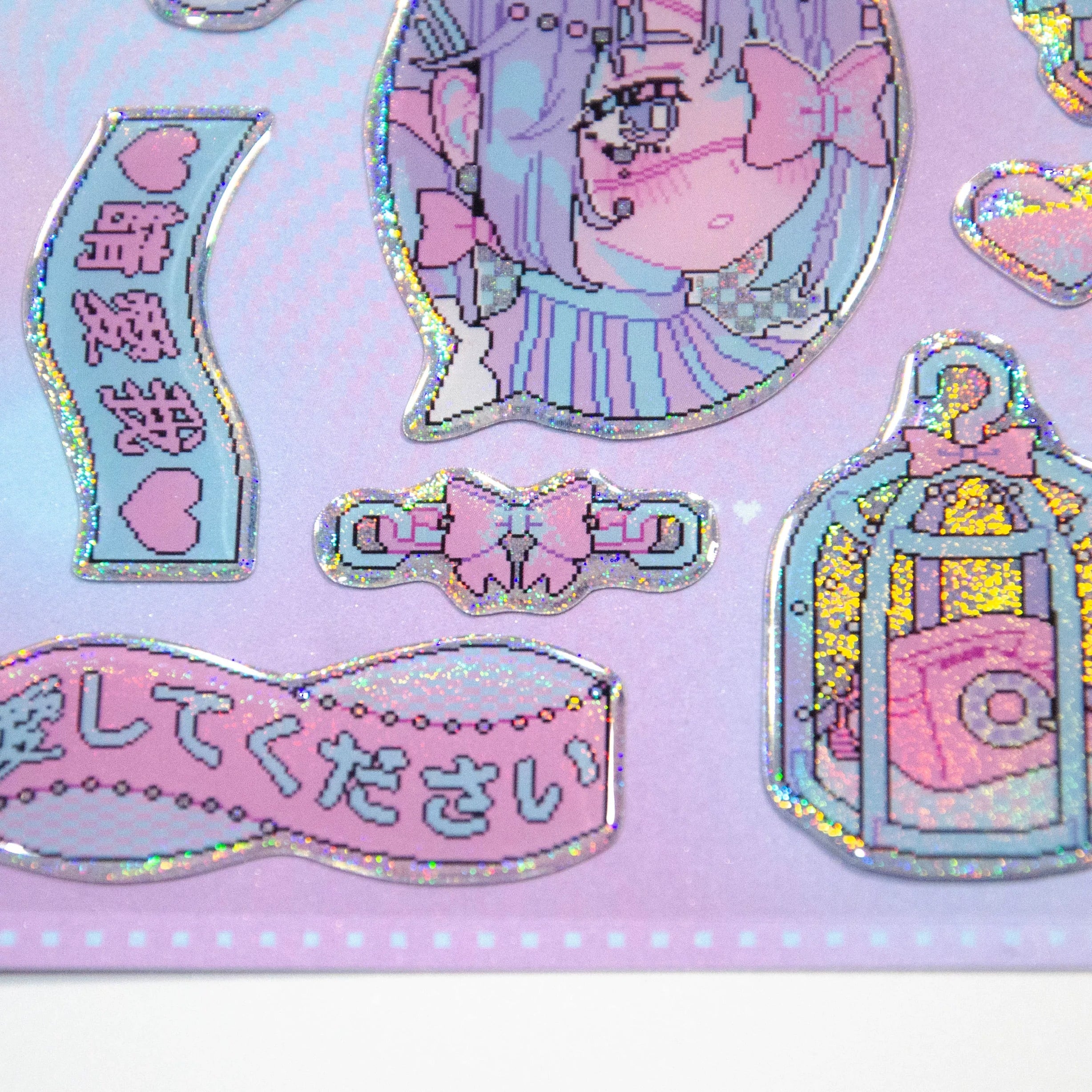オリジナルピクセル調の少女たちを詰め込んだ、ぷっくりステッカーシート⟡.*
