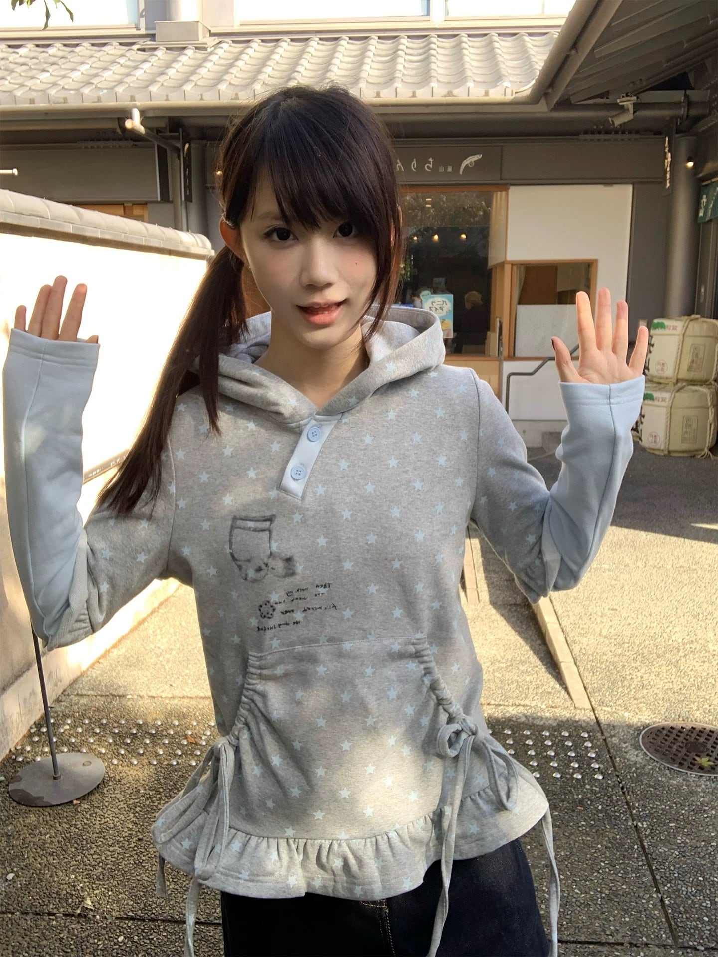 サイドのドローストリングを絞ることでシルエットの変化も楽しめます!