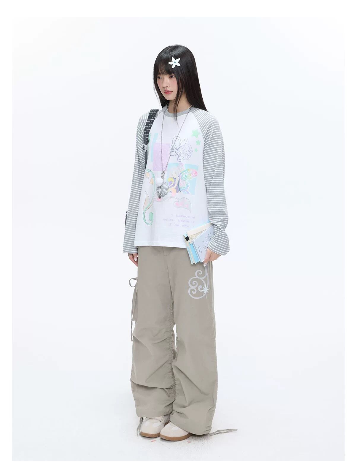 ストライプのラグランスリーブとの切り替えがアクセントをプラス。