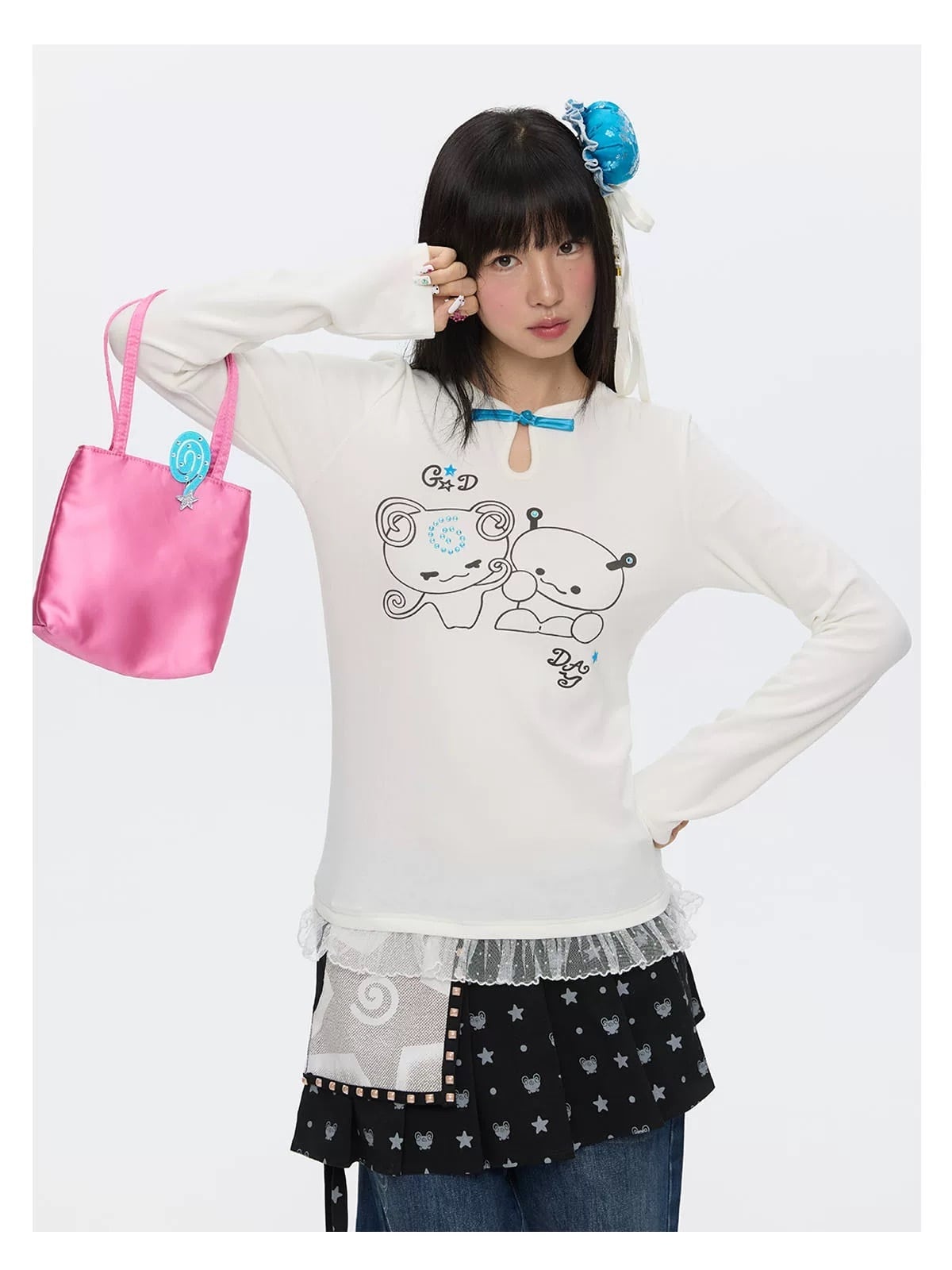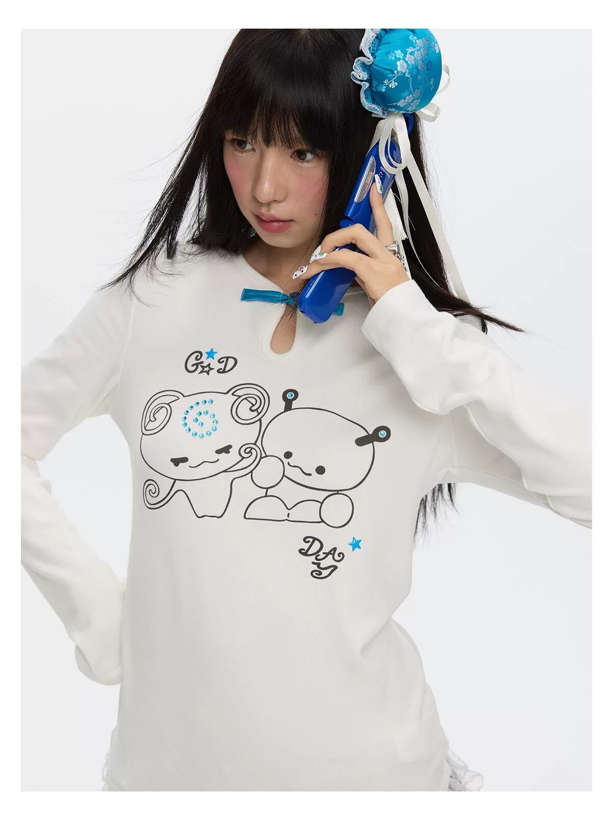 オリジナルのキャラクターイラストをデザインしたロングスリーブトップス⟡.*