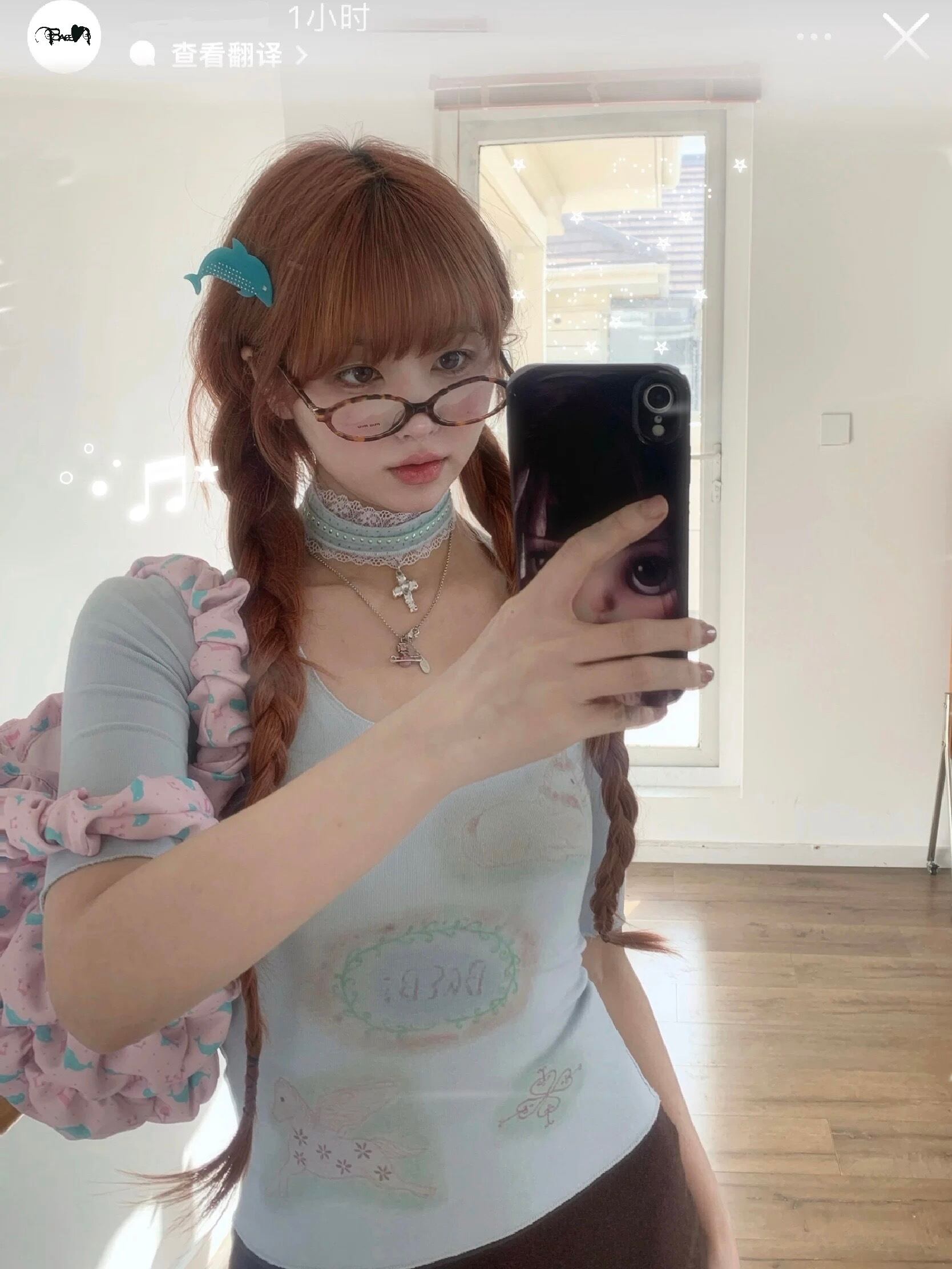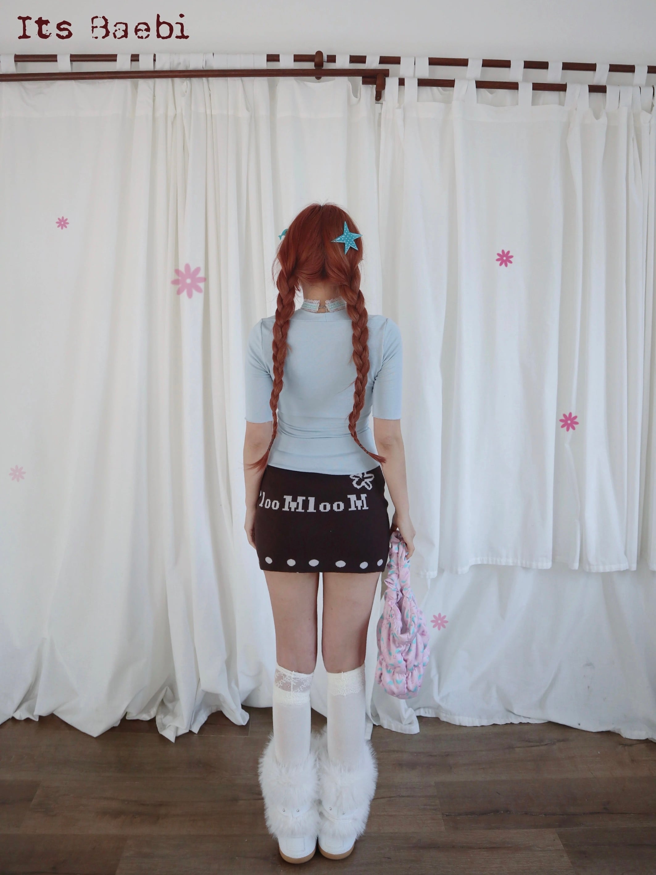 淡いブルーの色味に、やわらかくにじむようなグラフィックが重なったショートスリーブトップス໒꒱· ゚