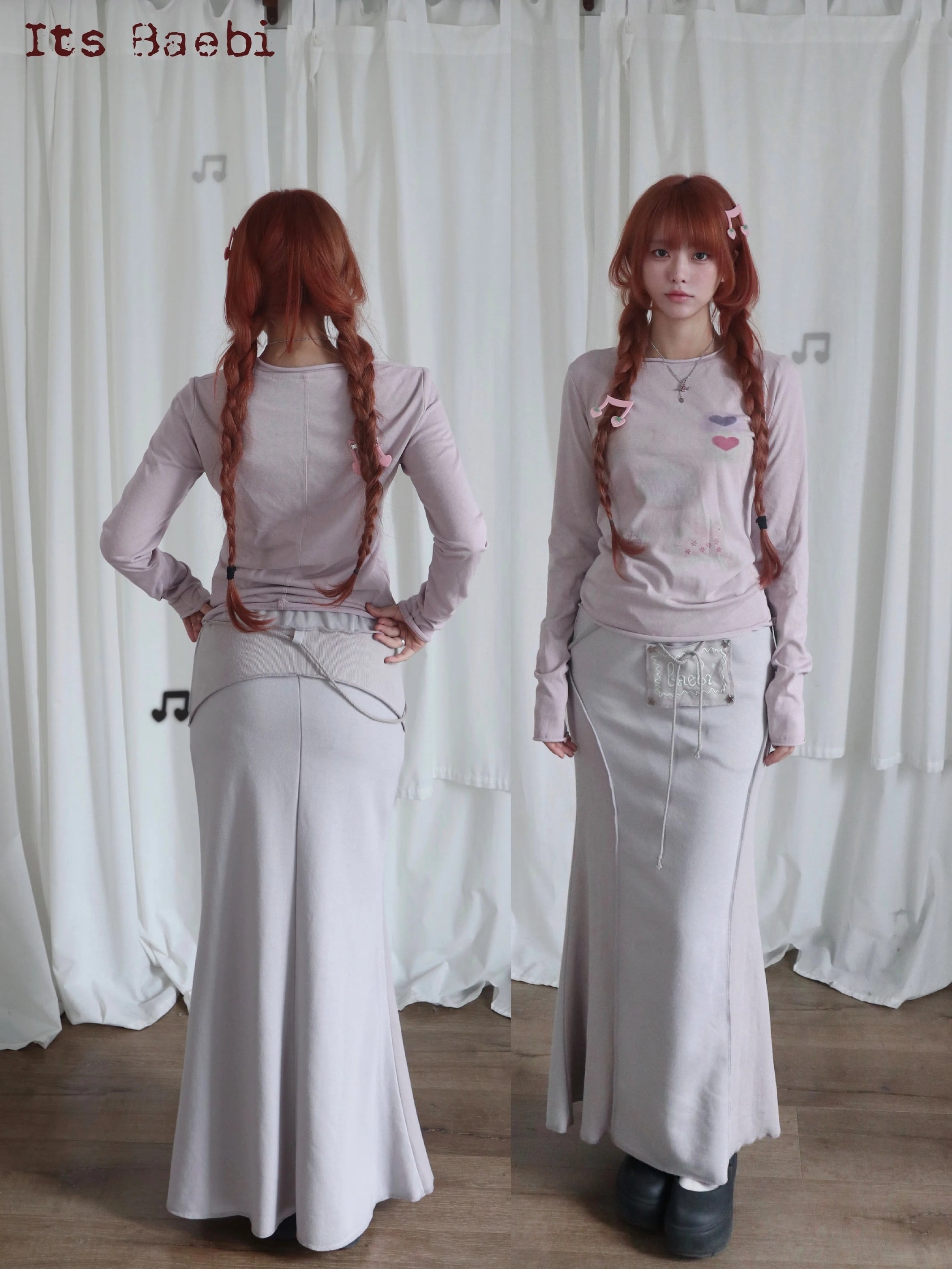 [Baebi] Lilac Graphic Slim Fit Long Sleeve Tee