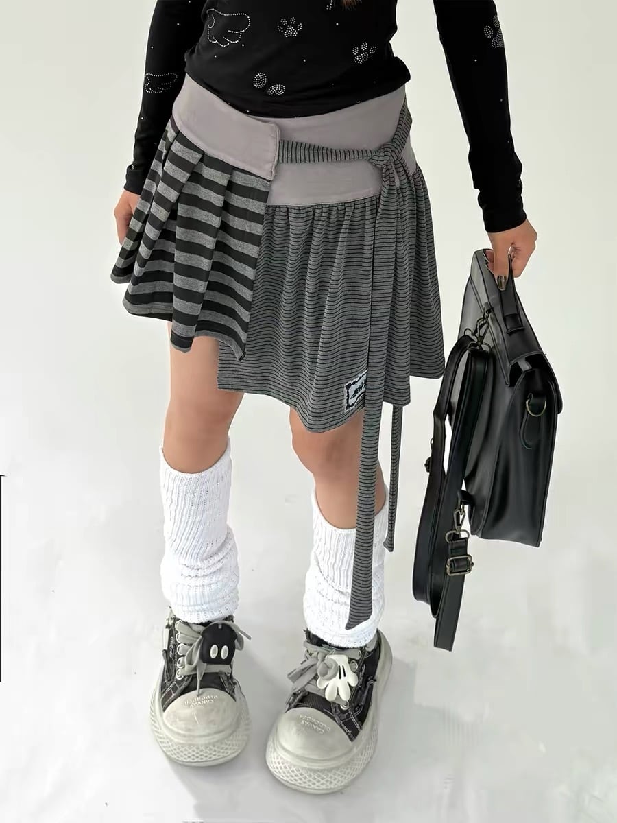 [春日野too] Striped Layered Wrap Mini Skirt