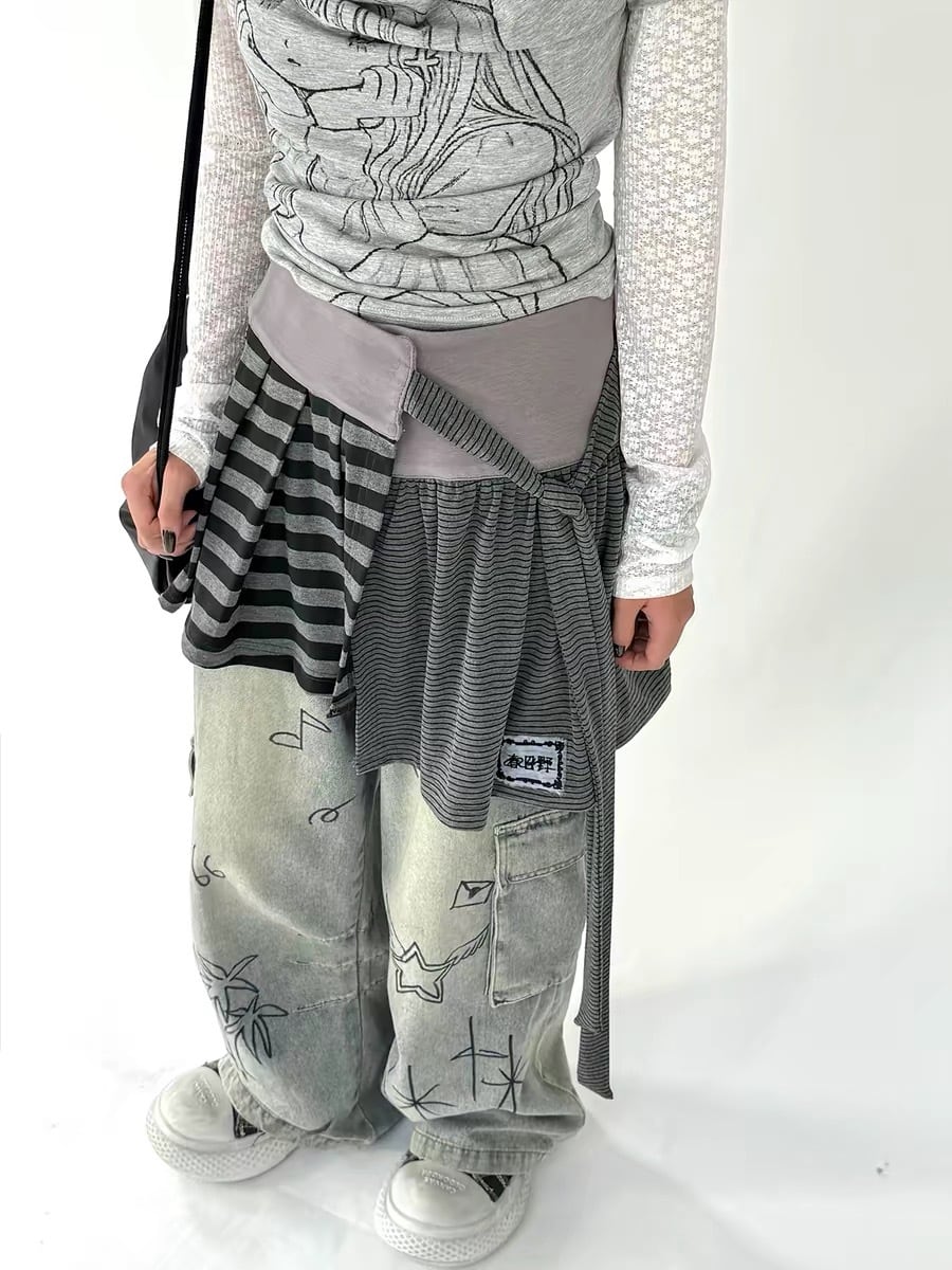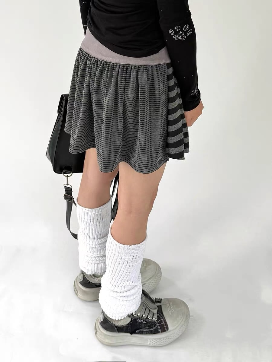 細ラインと太ラインのボーダーを切り替えた、レイヤード風デザインのミニスカート⟡.·